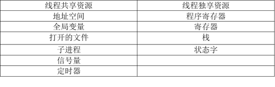 在同一进程中的各个线程都可以共享该进程所拥有的资源,如访问进程地址空间中的每一个虚地址;访问进程所拥有的已打开文件、定时器、信号量等,但是不能共享进程中某线程的栈指针。